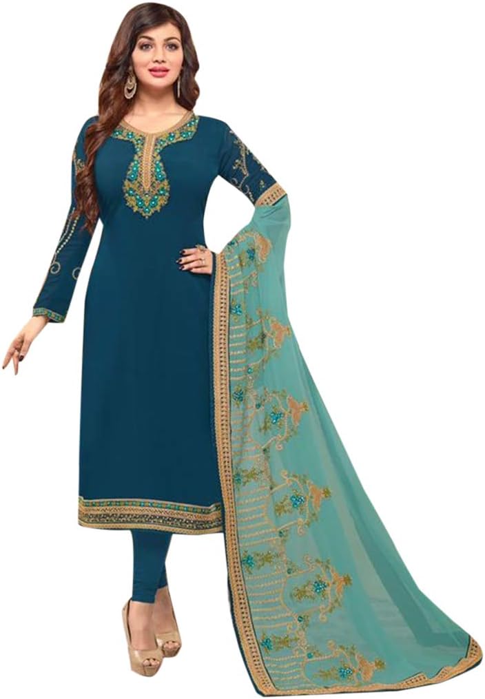 Amazon Com Blue Bollywood Festive Wedding Straight Salwar