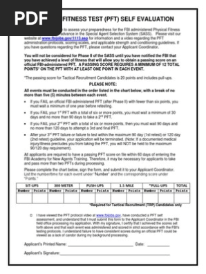You are sent to a lab to have a panel of tests completed. Stew i wish i had used your fbi pft workout about 10 weeks ago but i am on it now and seeing good results. Fbi physical fitness test applicants are offered three opportunities to pass the official pft within one year after passing phase ii. However because the test may require you to breathe in and out quickly you may feel dizzy and theres a risk that you may faint. There is no such thing as failing a test only performing less than predicted.